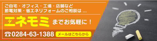 「省エネリフォームのエネモミ」は、足利市の有限会社籾山電設による、一般住宅やオフィス、工場、店舗の節電対策・省エネリフォームを手がける専門サービスです。